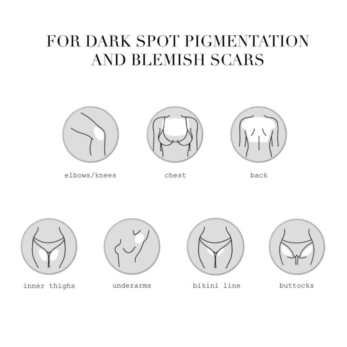 • Can also be used on other areas with hyperpigmentation such as the back, chest, inner things, elbows, and knees.